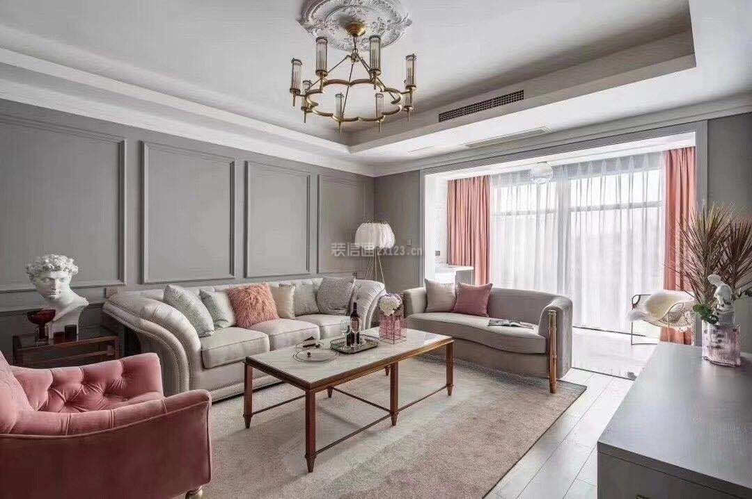 设计理念:一套轻奢美式三室两厅 装修上以高级灰 粉为主 营造出了既简约低调还温馨浪漫的居室氛围简洁实用的设计 在色彩的相互映衬下 越发显得时尚有气质了 室内轻奢元素的运用也增添时尚感