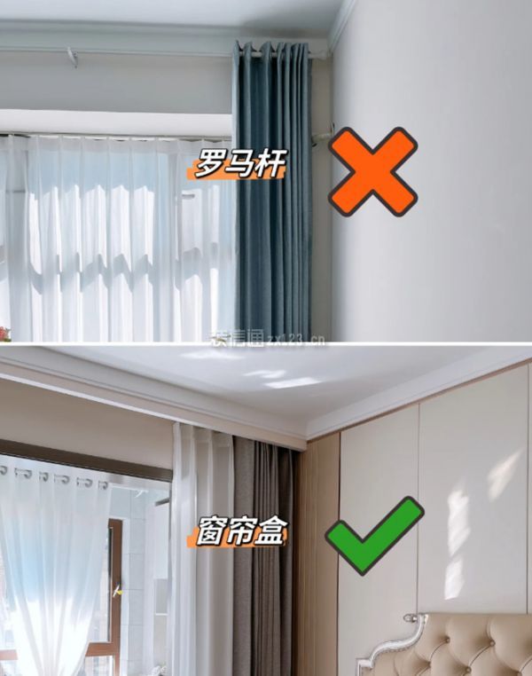 改进办法:针对这种问题,市面上有一种比较成熟的办法——安装窗帘盒。最主要的作用是能把窗帘杆,窗帘杆头隐藏起来,看上去显得更美观和谐、整洁。