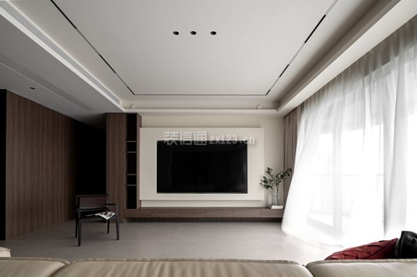 一种是家里做吊顶,窗帘盒建议直接包进吊顶里,这样出来的整体效果更统一,看上去整个窗帘就像挂在吊顶里一样,看上去非常简洁。