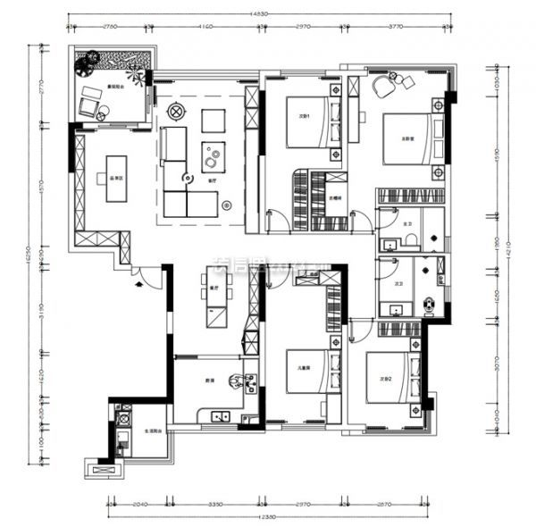 这种两个卫生间相邻的设计,在重庆非常常见,看下我们的设计师怎么改的,调整墙体位置,优化面积比例,用起来就不拮据,再把主卫门洞换个方向,微操作,但是好住得多。