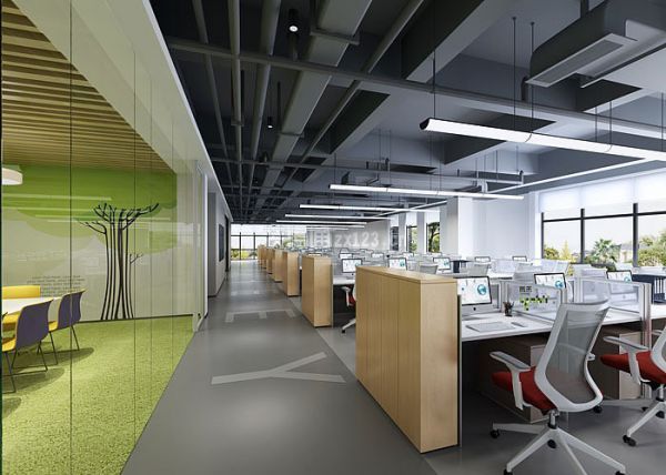 2、另外,高端办公室装修的配套设计中的细节问题。配套设计包括办公家具、窗帘、画盆景等:办公家具重要的一点是突出了整个办公空间的等级制;家具规格的大小、活动屏风的高矮、办公位置的设置能体现该位置办公人员在企业的职位大小。在办公空间中,窗帘一般会选用垂直百叶帘,卷帘只有在会议室和总经理办公空间中才出现;垂直布帘原则上不宜用在办公空间中。