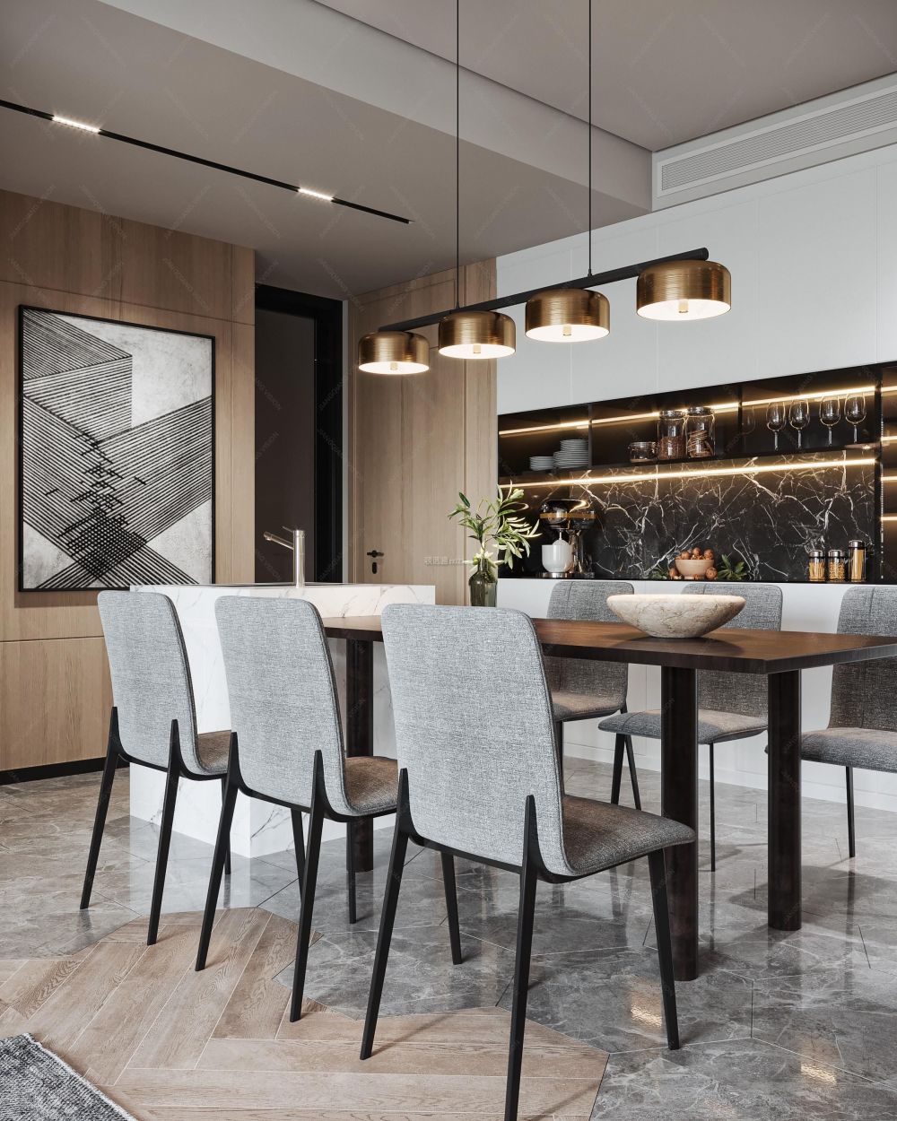 案例名称:万科御澜道110平米现代客餐厅装修效果图