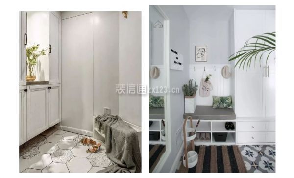 一体式玄关柜,大小不一的玄关柜组合绝 对是玄关收纳的利器。