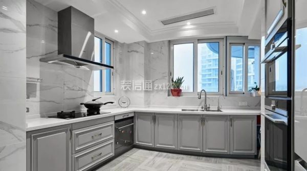 在厨房安装橱柜时,可以将封闭式橱柜与开放式橱柜相结合,既能方便来回拿放东西,又可以将不常用的物件隐藏起来。在做橱柜的时候就要考虑是否需要嵌入电器。