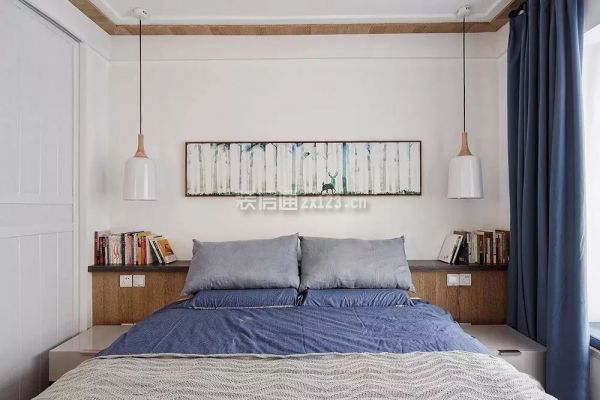 床头收纳有两种形式。一种是床头上方做成嵌入式收纳柜,一种是做成一体式组合收纳柜。