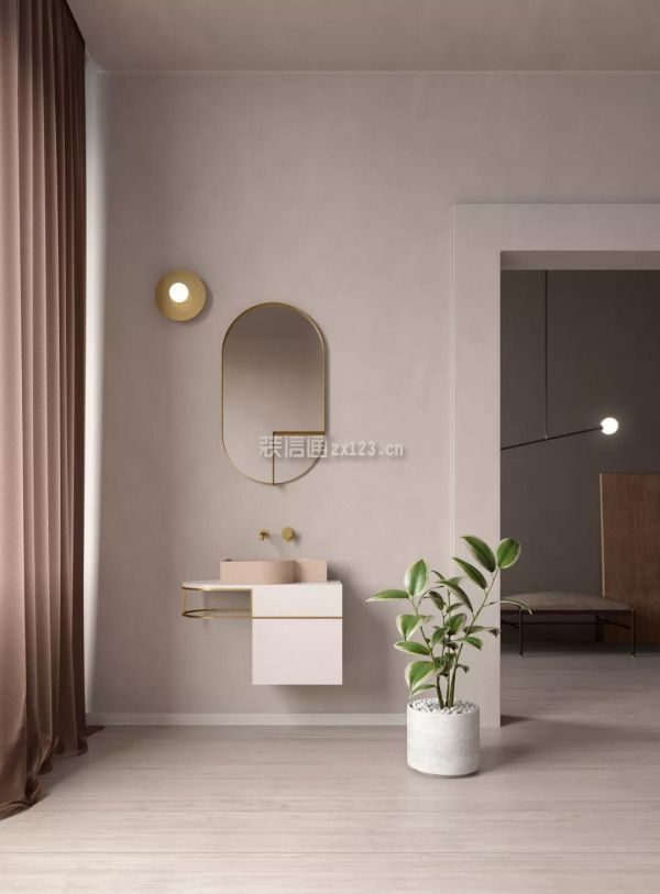 如果卫生间距离玄关近,在大门边装台盆,丰富玄关的功能。