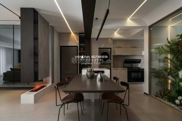 *餐桌选择石材面导台 嵌入式桌面设计,穿插结构,将极简主义体现得淋漓尽致