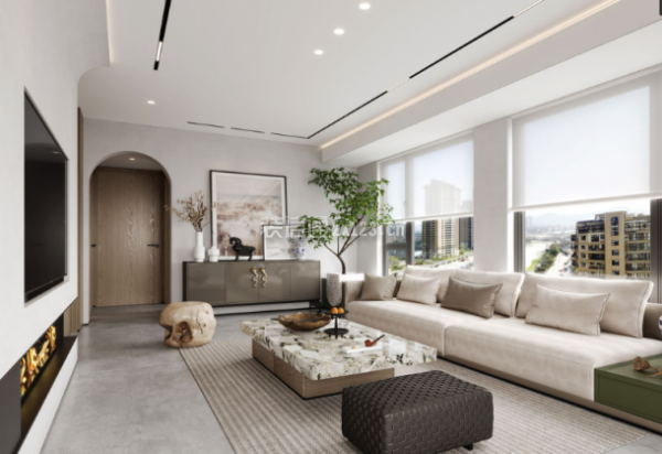 2、 如果复式房客厅层高不足以做一个小隔断,那么我们可以在客厅做一个艺术吊顶进行装饰,也可以选择多层次的大吊灯来弥补可以的客厅的空旷。