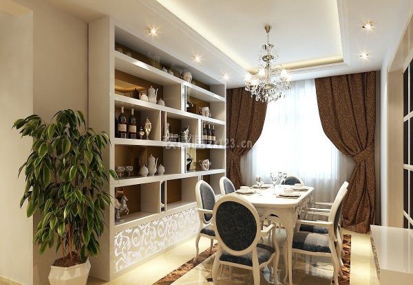 6、餐厅装饰设计:餐厅的装饰讲究美观,同时也要实用,最重要是适合餐厅的氛围。在装饰的时候,一些桌布和窗帘等,可以选择一些比较薄的化纤材料。而一些比较厚的棉质的材料容易吸附食物的气味,同时花色的颜色也不要过多的繁杂,也会影响到人的食欲。