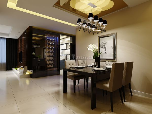 5、餐厅家具设计:餐厅家具宜选择调和的色彩,尤以天然木色、咖啡色、黑色等稳重的色彩为佳,尽量避免使用过于刺激的颜色。墙面的颜色应以明亮、轻快的颜色为主。