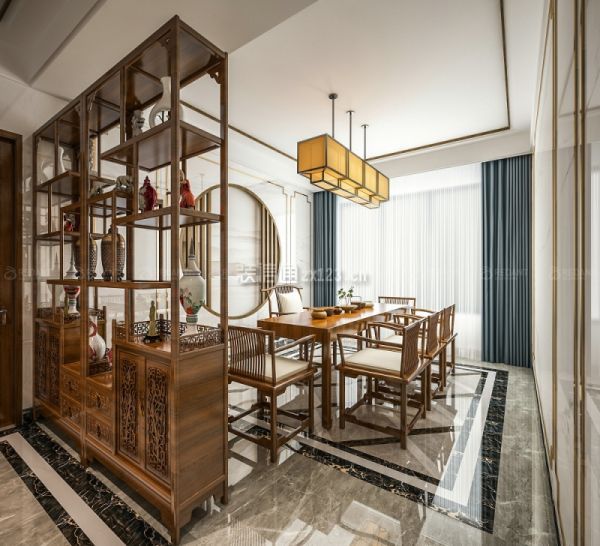 屏风可以说是新中式风格装修中比较典型的元素之一,屏风样式多种多样,有实木雕花的类型及拼图类型等。每种类型都比较独特,具有不错的装饰效果,从而使得整个装修都更富有立体感。