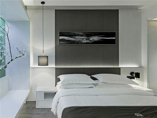 没有窗户的卧室已经很压抑了,如果再用深色的墙漆或者墙纸来装修卧室的墙面就更压抑了。卧室中可以用浅色的墙漆或者图案等简单一些的墙纸等,会让卧室在视觉中更舒服些。还可以使用光泽度很高的液体墙纸,这种液体墙纸比乳胶漆、墙面漆的颜色更丰富,还可以有各种图案。比墙纸施工也更方便,可以在墙面上diy出很多自己喜欢的图案和色彩。
