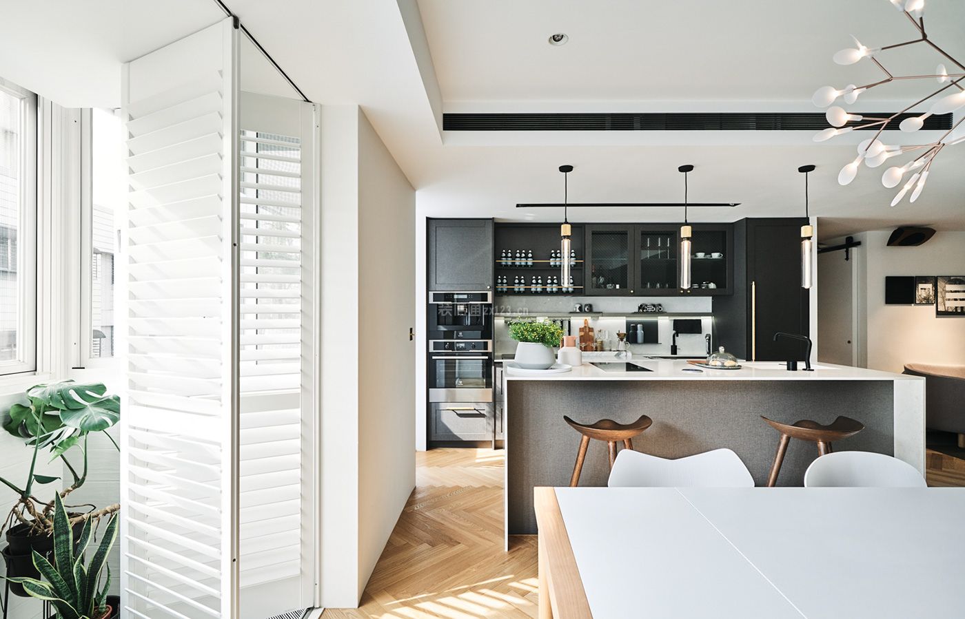 设计理念:究竟是在一次又一次经手他人梦想的过程中,逐渐形塑了自己对家的轮廓,还是率先有了属于家的雏形,不知不觉在別人的故事里埋入了自己钟情的样貌?又或者,两者早在未觉察之余,成为了共同体,最后浓缩了道地的北欧风厨房、宽阔又能容纳彼此需求的书房、有如hostel一般的四人房,用钟爱的明亮色调包裹与延伸,再置入私藏的单品??长年坚持的设计风格一点一滴实践在自己的家里,便是热衷于己业的不证自明。