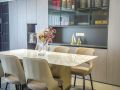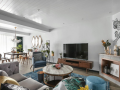 设计理念:220㎡品质私宅,夫妻2人,对于生活品质的需求大于居住需求,通顶隐形门采用与墙面相同材质覆面,统一视觉效果的同时,隔断实体空间。内部筑起一方收纳天地,使衣物、鞋服藏于无形。影视墙安装120英寸激光电视,并搭载立体环绕音响系统,居家就可以体验电影院的极致观影效果。当步伐转至开放式厨房,依墙而筑的橱柜与吧台简练的书出清晰向度。温煦灰白线板与沉稳大地黄石材色系相互配比,推出空间深度。主卫面积约5.4㎡,布局较为紧凑,除常规淋浴房外,还增设浴缸,满足多种沐浴方式。