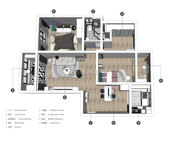 设计理念:全屋配色使用经典的白色与彩色的对比配色。是为了突出软装材质的物品的颜色鲜明性,为了孩子在家中可以把这些都当做“玩具”。 蓝色单人位、红色边几、花纹茶几及彩色地毯的选择,给了客厅生气与动力。无主灯的照明分布,保持着空间的简洁。 厨房可开放式,可封闭式,适合年轻夫妇餐饮、烹饪与卫生习惯。 卫生间钻石型浴室柜,面对钻石型淋浴房,洗烘一体洗衣机与女儿专属壁挂洗衣机在占用衣帽间空间得到的一个角落里安放,提升卫生间功能 餐厅宽敞,开阔 儿童房:粉色调调,太适合小女孩了,天真,活泼