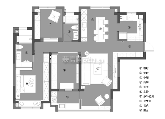 案例名称:凤凰湾120平现代风格装修案例