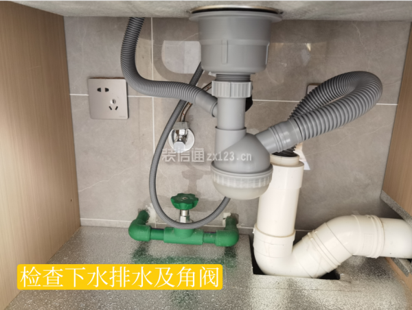 对于厨房、浴室柜、洗衣槽等位置的下水管及角阀位置,我们最需要注意的就是它的排水情况