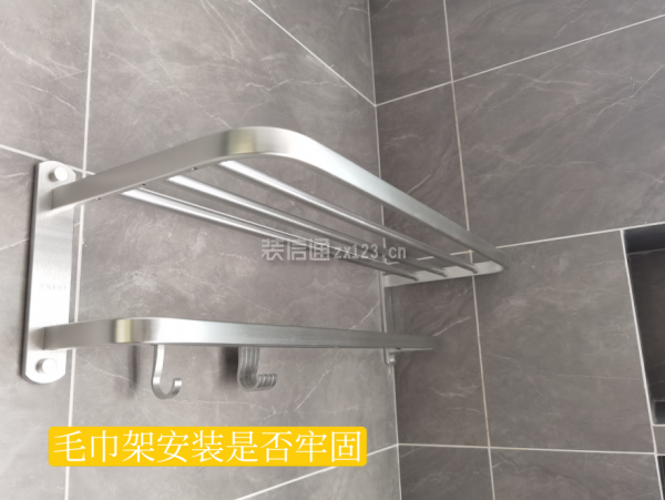卫生间的毛巾架及其它五金挂件需要检查的地方除了安装是否牢固外,还需要测试下它的高度是否合理,如不符合业主的身高要求,可以及时做出调整