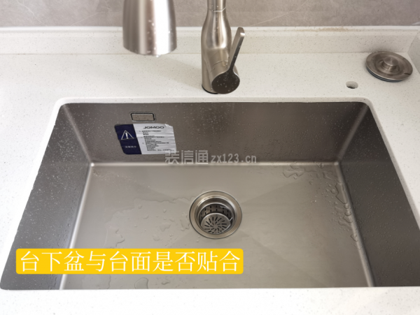 厨房如果是安装的台下盆,那么我们就要检查台下盆与厨房台面是否紧密贴合,再开始放水测试它的下水和溢水孔的排水情况